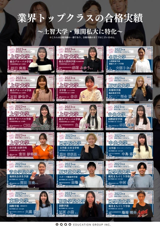 EQAOでは、受験生を全力でサポートする講師陣の約8割が上智大学生で構成され、残りの約2割も早稲田大学や慶應義塾大学などのトップレベルの大学出身者です。