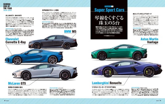 3月号の巻頭企画は年始恒例「ゲンロク・カー・オブ・ザ・イヤー」! 2024~2025年にかけて話題必至のスーパーカー&スーパーSUVに一気乗り! 登場車種は「 ランボルギーニ・レヴエルト 」「 アストンマーティン・ヴァンテージ 」「 BMW M5 」「 マクラーレンGTS 」「 シボレー・コルベットE-Ray 」「 フェラーリ・プロサングエ 」「 メルセデス・ベンツ G 580 with EQテクノロジー 」「 BMW XMレーベル 」「 ロータス・エレトレR 」「 メルセデス・マイバッハEQS 680 SUV 」の総勢10台。 果たして今年の1台に選ばれるのは!? 第2特集は「フェラーリV12の世界」。「 599 GTO 」から「 812 」「 デイトナSP3 」まで、近代V12モデルを徹底検証! ほか、新型「 MINIカブリオレ」、新型「BMW 2シリーズ・グランクーペ」、新型「メルセデスAMG CLE 53 カブリオレ」など、今が旬の高級車&スポーツカーを徹底紹介! 「東京オートサロン2025」も大特集でお届けします!