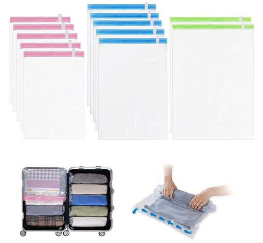 Hoxhyonの圧縮袋は、ポンプや掃除機を使わず、手で巻くだけで衣類を約80%圧縮できます。これにより、スーツケースやタンスの収納スペースを効率的に使えるようになります。袋自体は非常に軽量で、旅行の荷物に負担をかけることなく持ち運び可能。特に、旅行先や引越し時の収納整理に便利です。持ち物をスッキリとまとめ、スマートな収納を実現します。