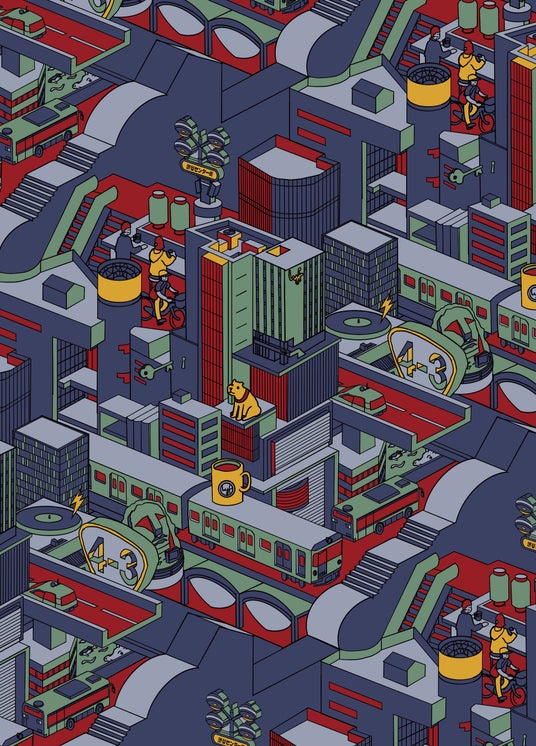 渋谷各所のランドマーク(スペイン坂や渋谷の街並み)をデザインに落とし込んだ、街の躍動感が伝わる3枚構成の作品です。