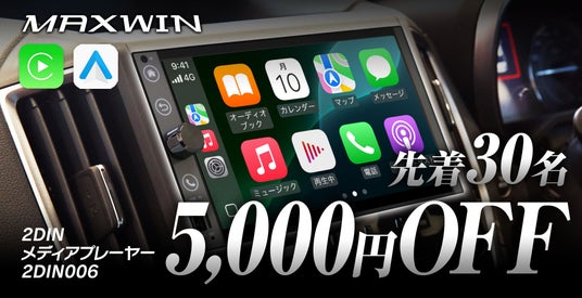 MAXWINのワイヤレスCarPlay対応最新型2DINメディアプレーヤーが先着30名様限定で5,000円OFFクーポンを発行!