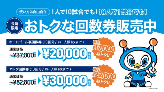 回数券は、1人で10試合観戦することも、10人で1試合を楽しむことも可能。ご家族やご友人にも回数券を適用し、チケットを購入いただけます。
