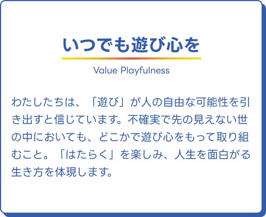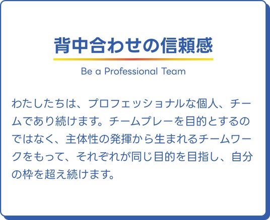 採用においては、人の可能性を信じ、多様な挑戦の機会を提供できる会社づくりを実現するため、特に以下の行動指針への共感を大切にしています。