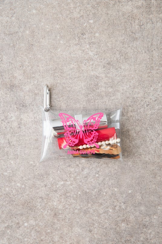 コインやリップなど、ちょっとした小物入れにも使いやすいクリアミニポーチ。