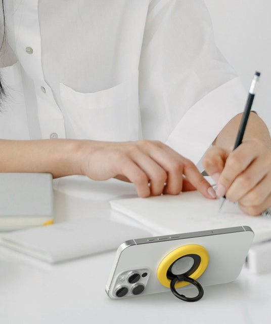 前面と背面に2つの「メタルリング」を搭載。背面にはデバイスを装着でき、前面にはスマホリングやスタンドなどのマグネット対応アクセサリーを取り付け可能です。