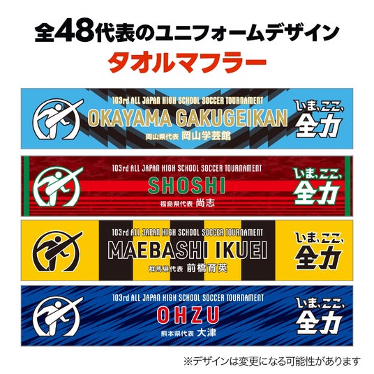 第103回全国高校サッカー選手権大会に出場する全48代表の学校名入りタオルマフラーです。