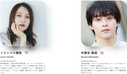イメージモデル:中瀬古 隆誠(左)、トリンドル瑠奈(右)