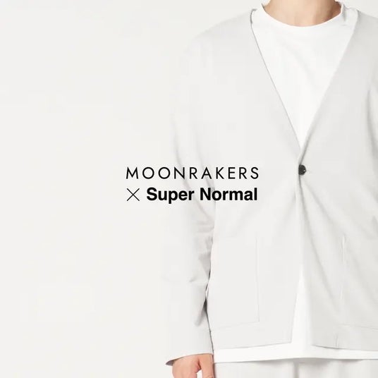 『MOONRAKERS × Super Normal「優れた普通のセットアップ」』は、最新の先端素材「MOON-TECH(R)PILE」による圧倒的な機能性で快適で便利な生活を実現。服のスタイルとしても、どんなシーンにも馴染むシンプルでベーシックで飽きのこないデザインで「新しい服の形|未来のベーシック」に挑戦した商品です。
