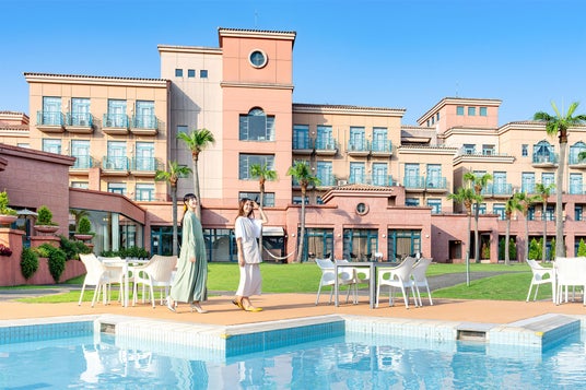 テラコッタカラーの建物、広々とした中庭、その中心のプールやフローティングラウンジ、そしてホテルを取り巻く西海橋の雄大な自然。異国情緒あふれる景色、空間が、一歩足を踏み入れた瞬間にリゾート気分を味わえる当宿には、県内のみならず、九州各県から多くのお客様に足を運んでいただいております。