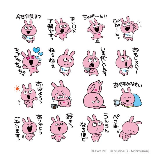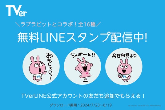 民放公式テレビ配信サービス「TVer(ティーバー)」は、人気クリエイターにしむらゆうじ氏の「ラブラビット」とコラボしたLINEスタンプを2024年7月23日(火)から期間限定で無料配布します。