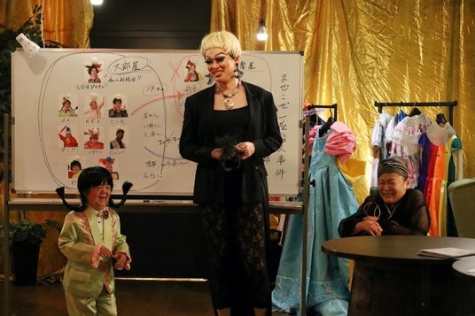 脚本はドラァグクイーンのエスムラルダ。ライター・脚本家・歌手・俳優と多彩に活動。プロデューサーの東と強い想いをエンターテインメントに昇華させた。