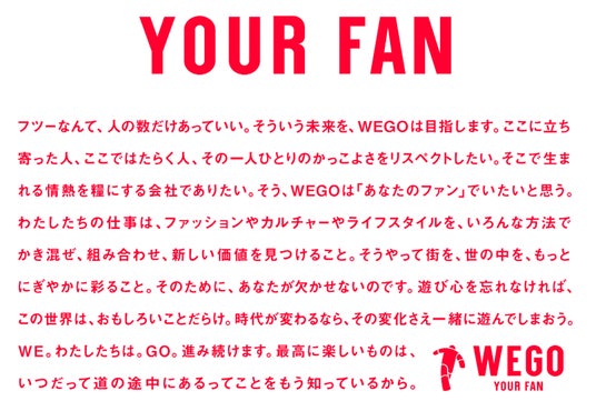 コーポレートスローガン【YOURFAN】ムービー公開、ストアイベントや超十代との共同イベント【超WEGO】を開催