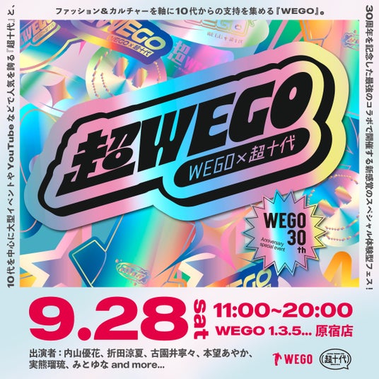 また、様々なストアイベントも予定している中、体験型ティーンズフェス「超十代」とコラボレーションした超プレミアムイベント【超WEGO】の開催も決定しました。