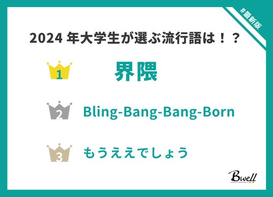 大学生市場に特化したマーケティングをはじめ、国内外人材の採用支援サービスを展開している株式会社ビーウェル(本社:大阪府大阪市 代表取締役:大亀雄平 以下 当社)は日本全国の大学生(Z世代)を対象に「2024年の流行語」に関する調査を実施いたしましたことをお知らせいたします。今回の調査では、選ばれた流行語の使用状況や背景についても深掘りし、大学生(Z世代)のトレンドを探ります。