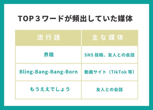 これらのワードは、それぞれSNSや動画サイト、日常会話で頻繁に使われることで支持を得ました。