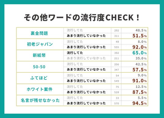 今回のアンケート調査ではTOP3以外にも様々なワードの流行度を測ることができました。