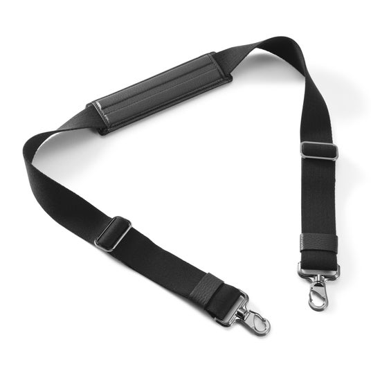 着脱及び長さ調整可能な滑り止め付きのショルダーベルト。移動が多いビジネスマンの必需品です。